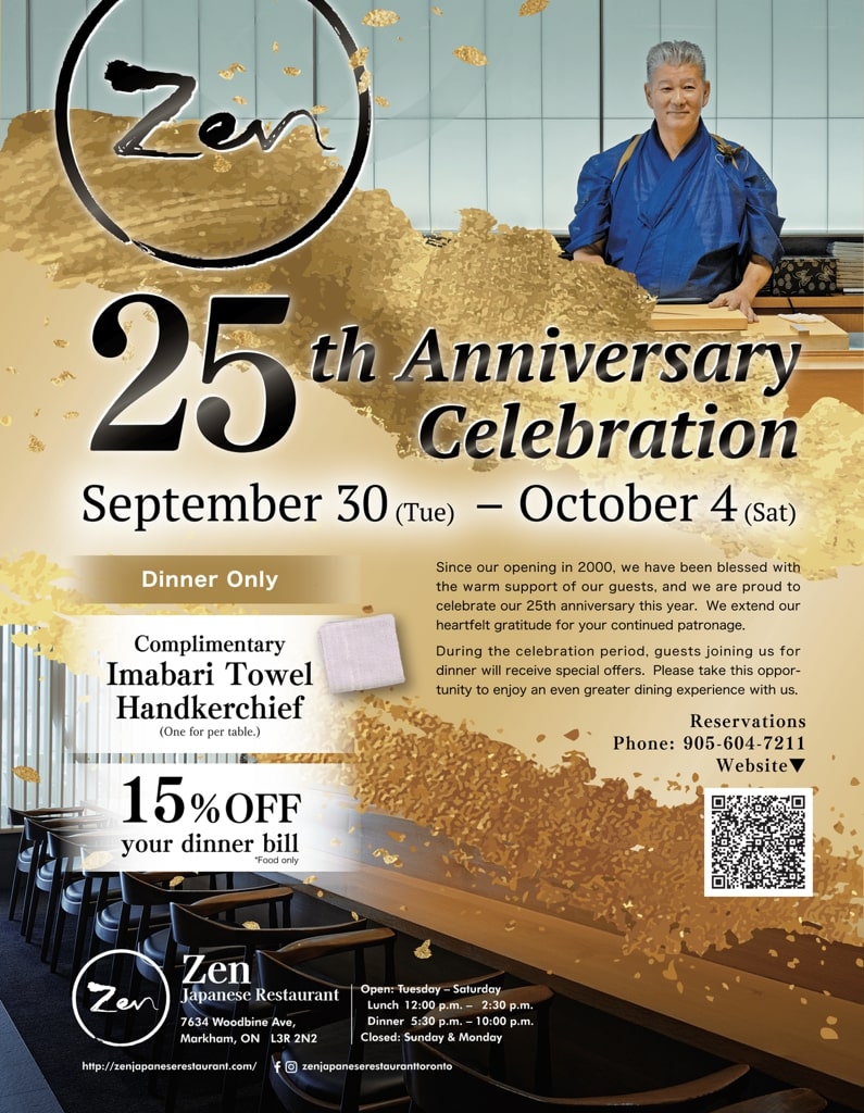 25th Anniversary Celebration – September 30 to October 4 (Dinner Time Only)
